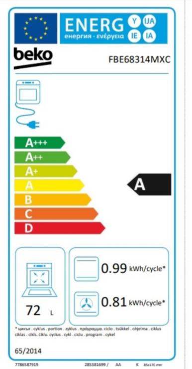 - Volume du four en litres : 72