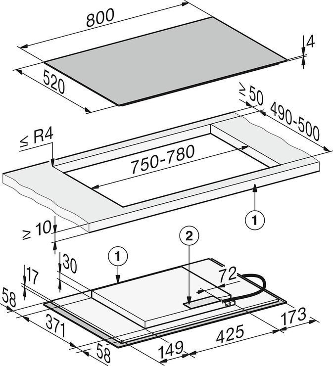 - Dimensions d'encastrement HxLxPcm : x 750 x 490 mm