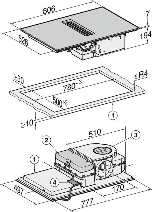 - Dimensions d'encastrement HxLxPcm : 194 x 780 x 500 mm